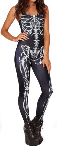 Une combinaison fantaisie très originale! Son imprimé squelette suit les courbes de votre corps, vous affinant ainsi délicatement. Modèle à la matière douce, au col rond, qui descend légèrement plus bas dans le dos.