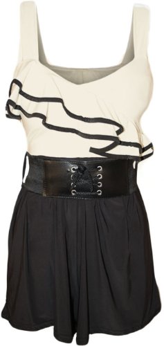 PaperMoon - Combishort froncé sans manches avec une ceinture - Combinaisons - Femmes - Crème - 40-42