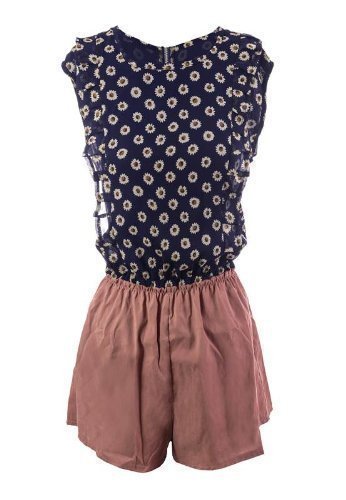 HIDDENFASHION - Combinaison short pour femme sans manche volant faux daim - Bleu marine, 40