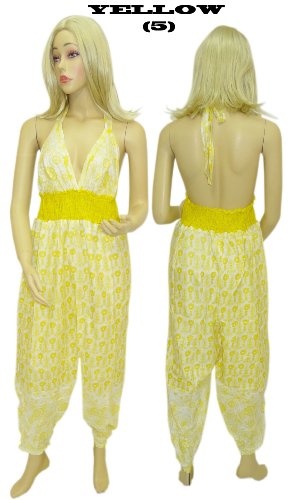 licol au cou dames combinaison en coton motif floral sexy (Gratuit Taille 8-14, jaune)