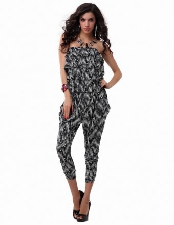 Description : combinaison bustier/pantalon avec deux poches de chaque côté du pantalon. Haut de type bustier avec élastique de serrage efficace comprenant 4 franges de tissu volant jusqu'à la taille. Pas de volants dans le dos. Taille légèrement resserré pour affiner la silhouette. Poches larges, peu profondes. Pantalon coupe ample mais ceintré jusqu'aux jambes. Ne sert pas au niveau des jambes. Ensemble confortable et très agréable à porter Qualité du tissu : matière souple, léger à porter, légèrement extensible, opaque, motifs imprimés griffures blanches verticales et petites étoiles blanches Longueur : env 108-109 cm ; Taille : Minimum 27 cm, Maxi 44 cm Taille unique 36-40 Composition : 100% Polyester Expédié dans les 24h (jours ouvrés)Retrouvez tous nos produits (chaussures, vêtements, accessoires, montres, bijoux, etc.) en tapant "Waooh" dans vos recherches.