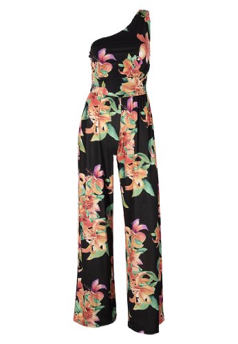 Combinaison pantalon en jersey à imprimé floral et aspect soyeux. Délicatement froncée sur l'épaule gauche et sous la taille. Ourlet élastiqué dans le haut du dos. Fermeture éclair sur le côté. Haut de la combinaison doublé. L'imprimé peut légèrement varier par rapport à la photo. Longueur côté sous la ceinture : env. 106 cm.