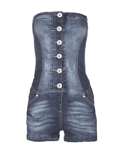 - Combi-short pour femme avec bustier bandeau en toile jean
