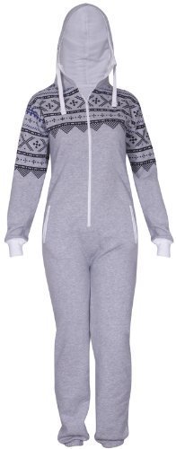Purple Hanger - Combinaison pour femme imprimé aztèque longue manche poche fermeture éclair capuche - 36-38, Gris clair