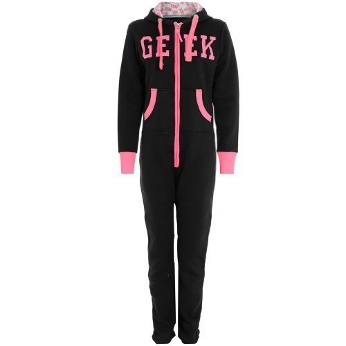 Mary Jane Fashion - Combinaison à capuche pour femme imprimé GEEK fluo fermeture éclair - XL - 42, Gris