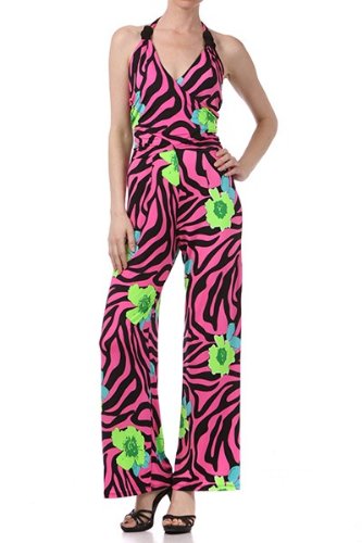 Waooh - Mode - Combinaison "Tracy" motif zèbre - Fuchsia et vert - Taille L